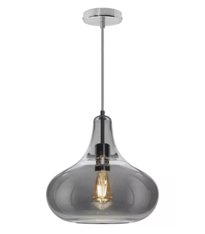 Modern Smoky Grey Glass Ceiling Hanging Pendant Light Teardrop Style Shade